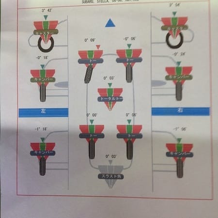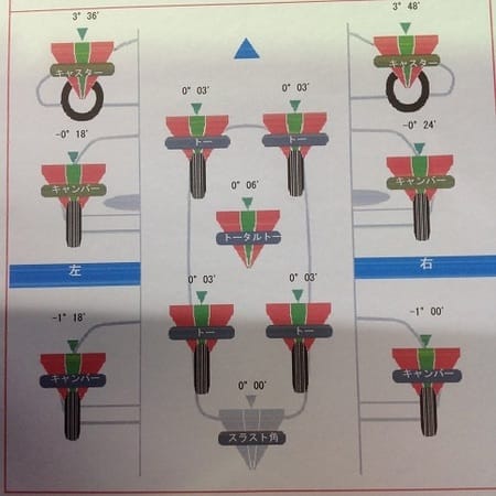 実施理由:右前タイヤ内側減り・左前タイヤ外側減り