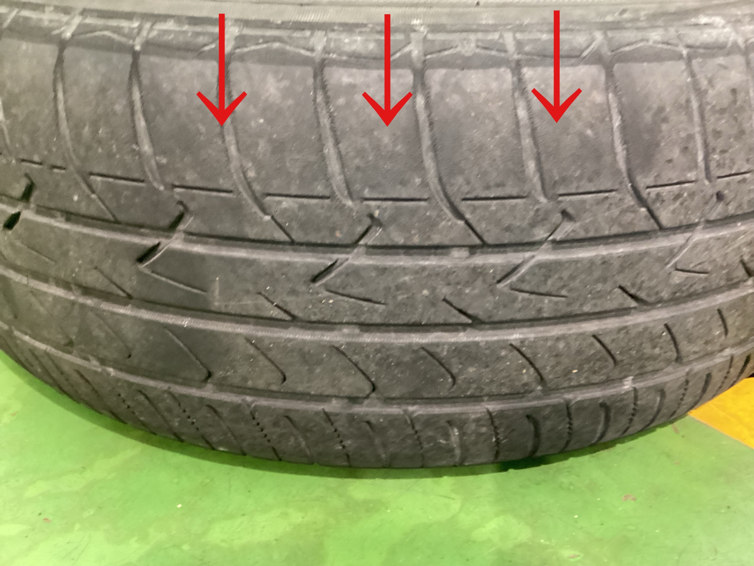 真ん中の溝に比べ外側の溝がすり減っております。ミニバンは車が重く特に多人数乗車時、タイヤへの負担が大きくなります。重心が高くふらつきやすくコーナーグリップ時、ブレーキング時に部分的に強く力がかかるためタイヤが偏摩耗しやすくなります。そこでおすすめするタイヤは【ミニバン専用タイヤ】です。ブリヂストンではミニバンの特徴に配慮したタイヤを設計しています。