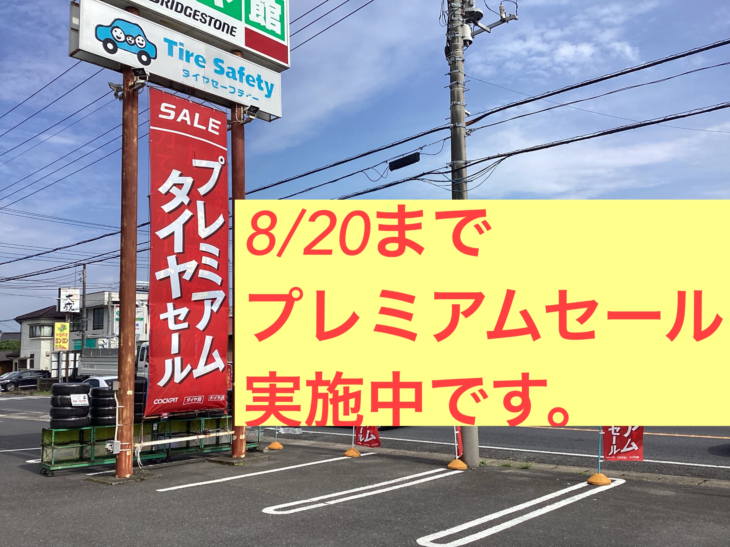 本日、ご紹介するのはタイヤ館の【プレミアムセール】です。8/20まで実施しております。
