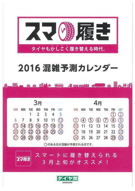 少しずつ暖かくなりますが、スタッドレスの履き替え混雑が