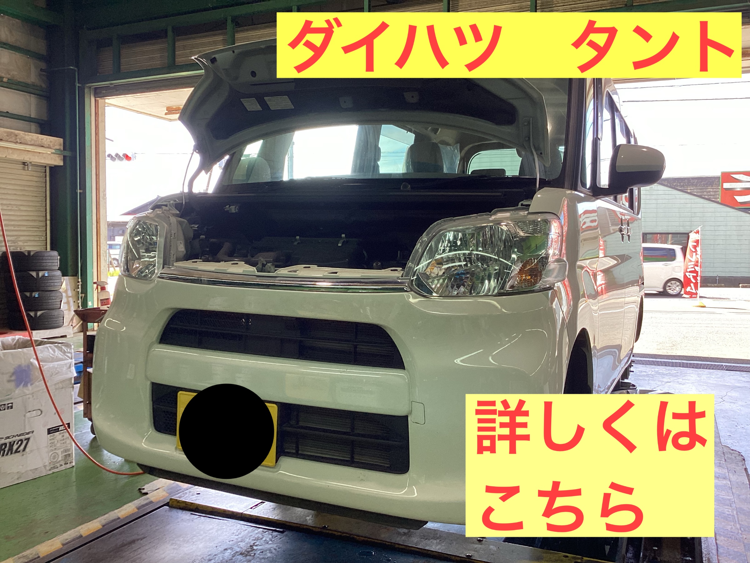 本日、ご紹介するのは、安全点検実施からの【バッテリー交換】です。ダイハツ タントでタイヤ交換ご来店のお客様です。