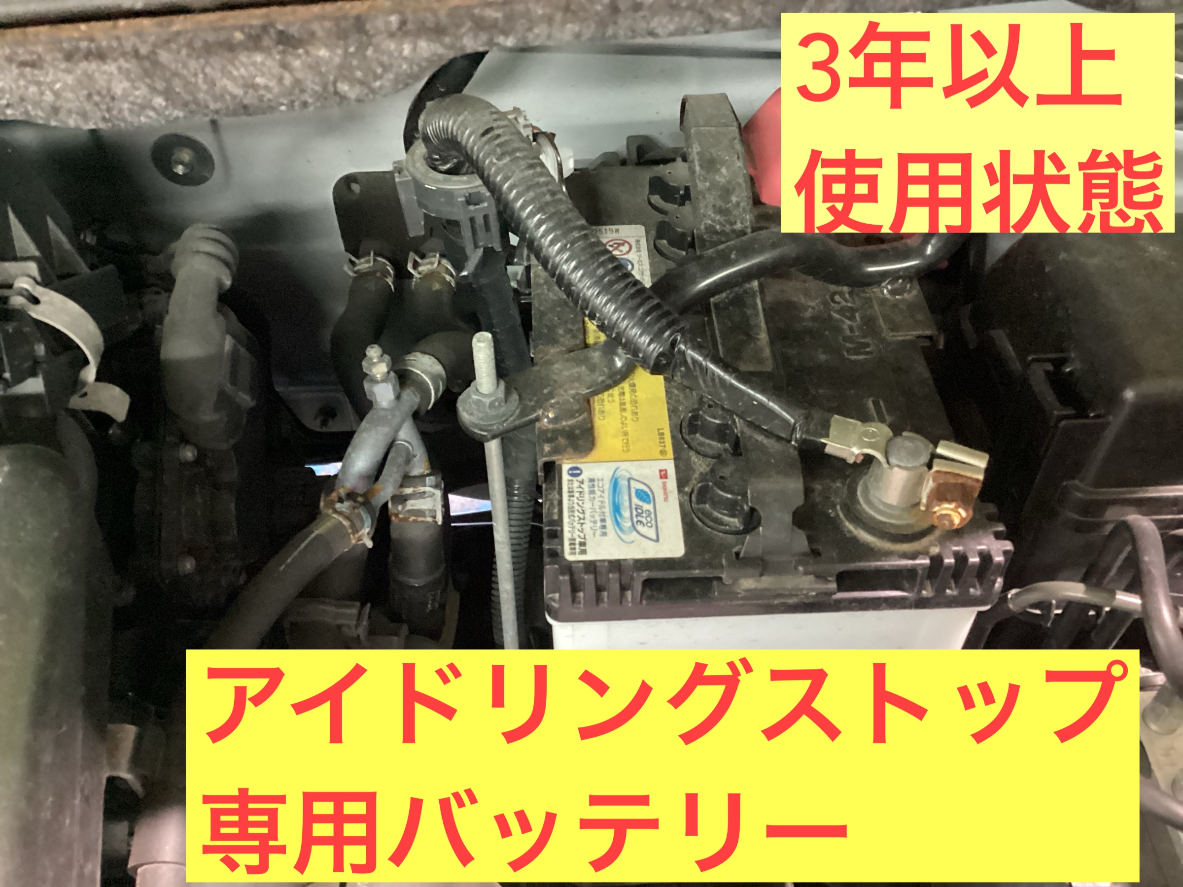 新車時に搭載されているバッテリーで3年以上使用状態でした。バッテリーもお車の使用年数で交換が必要で3年以上使用で交換をおすすめしております。