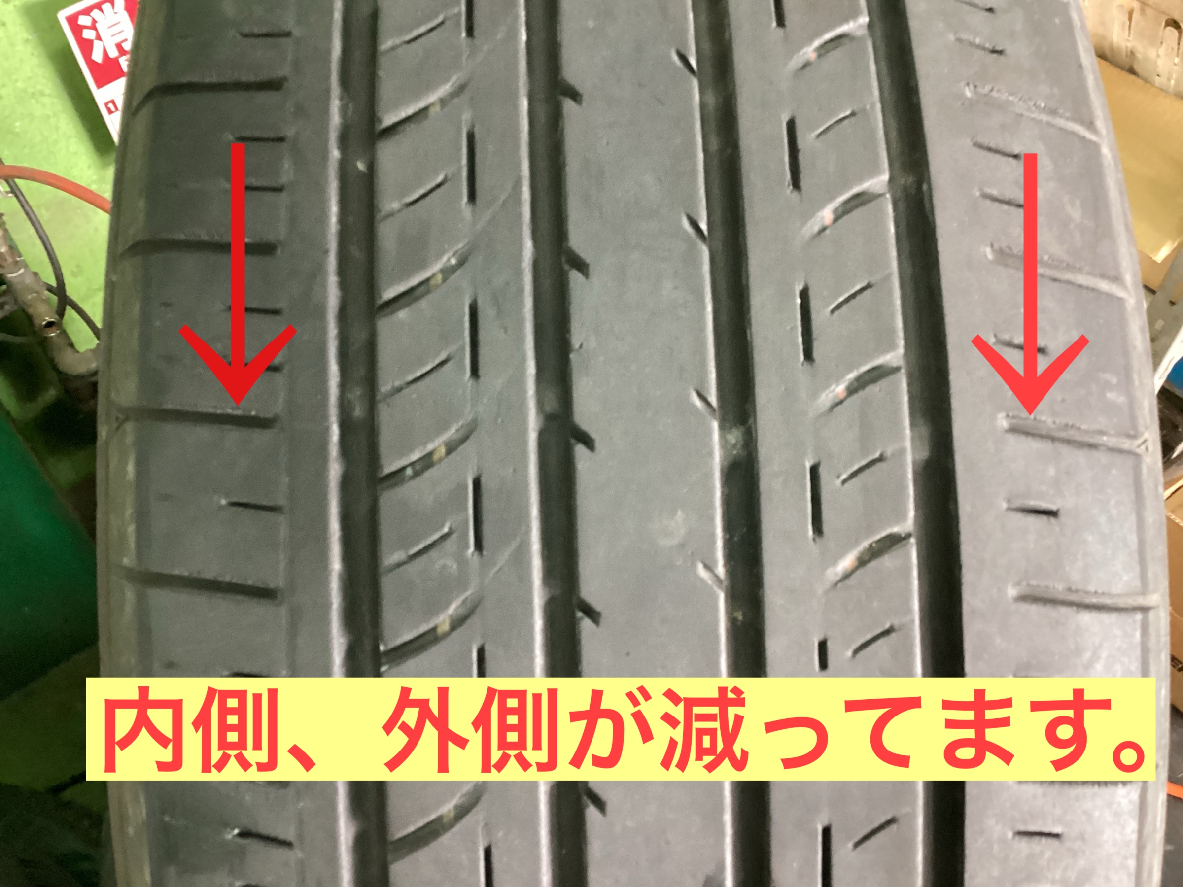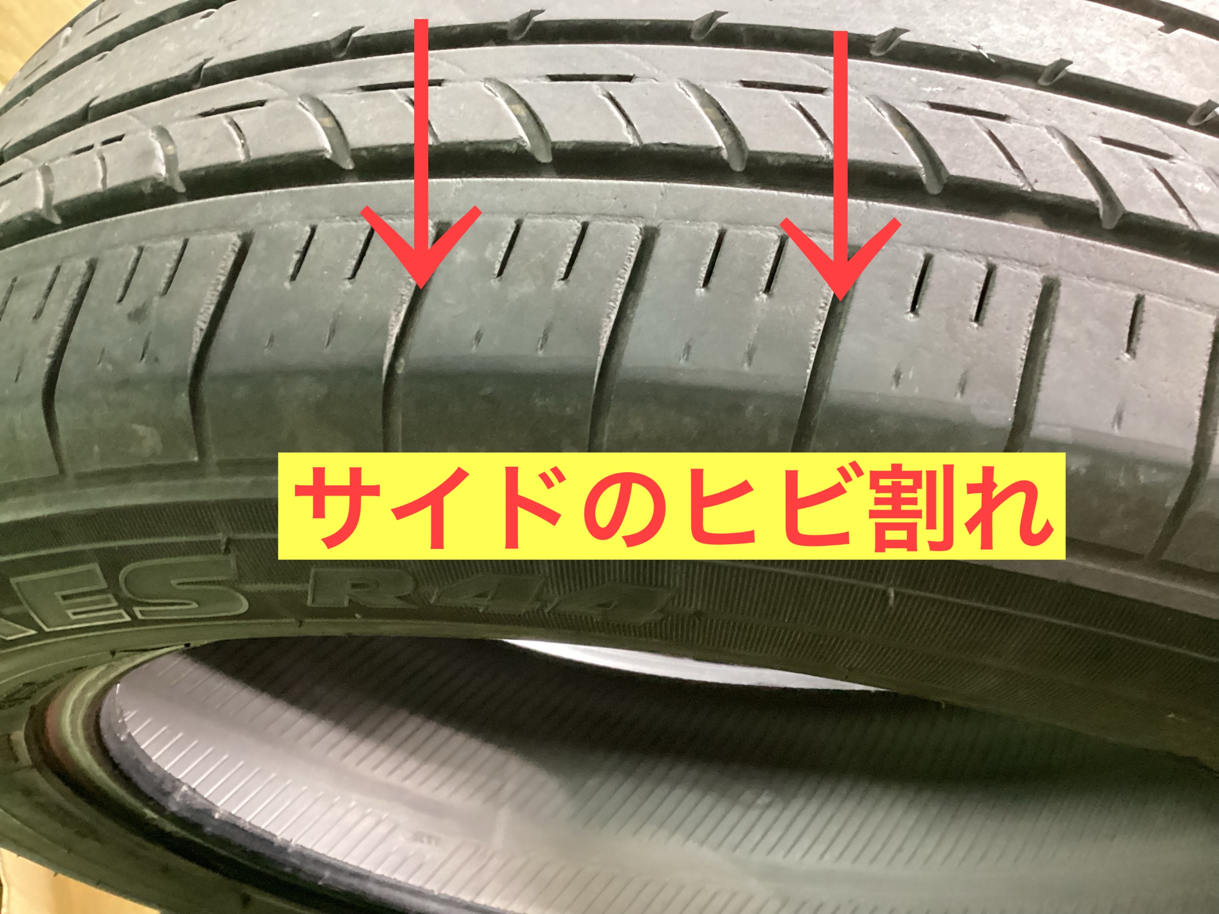 本日は、ミツビシ アウトランダーのタイヤのサイドのヒビ割れが気になりお客様にご来店頂きました。それでは点検を実施致します。