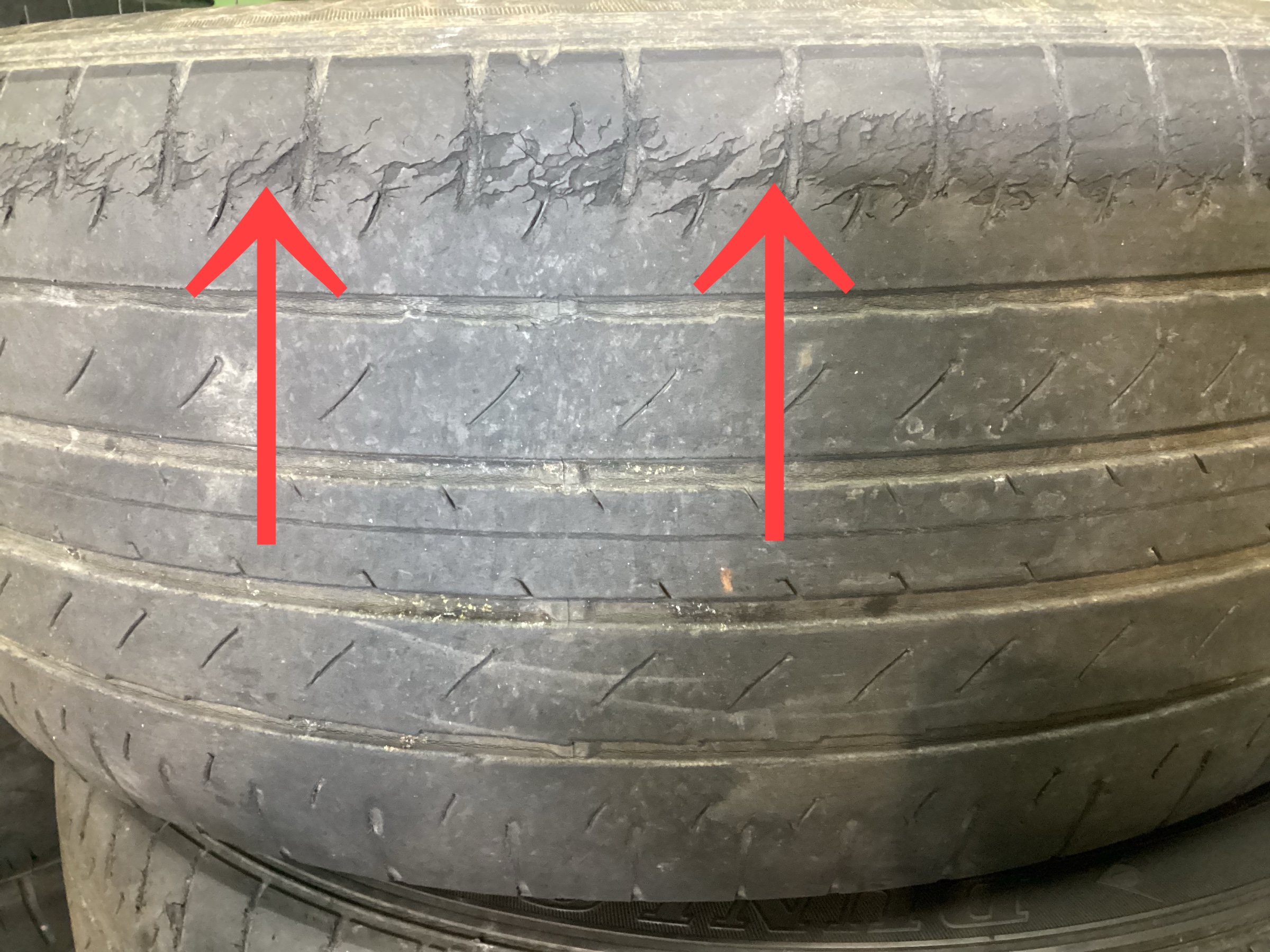 タイヤの外側が損傷しております。