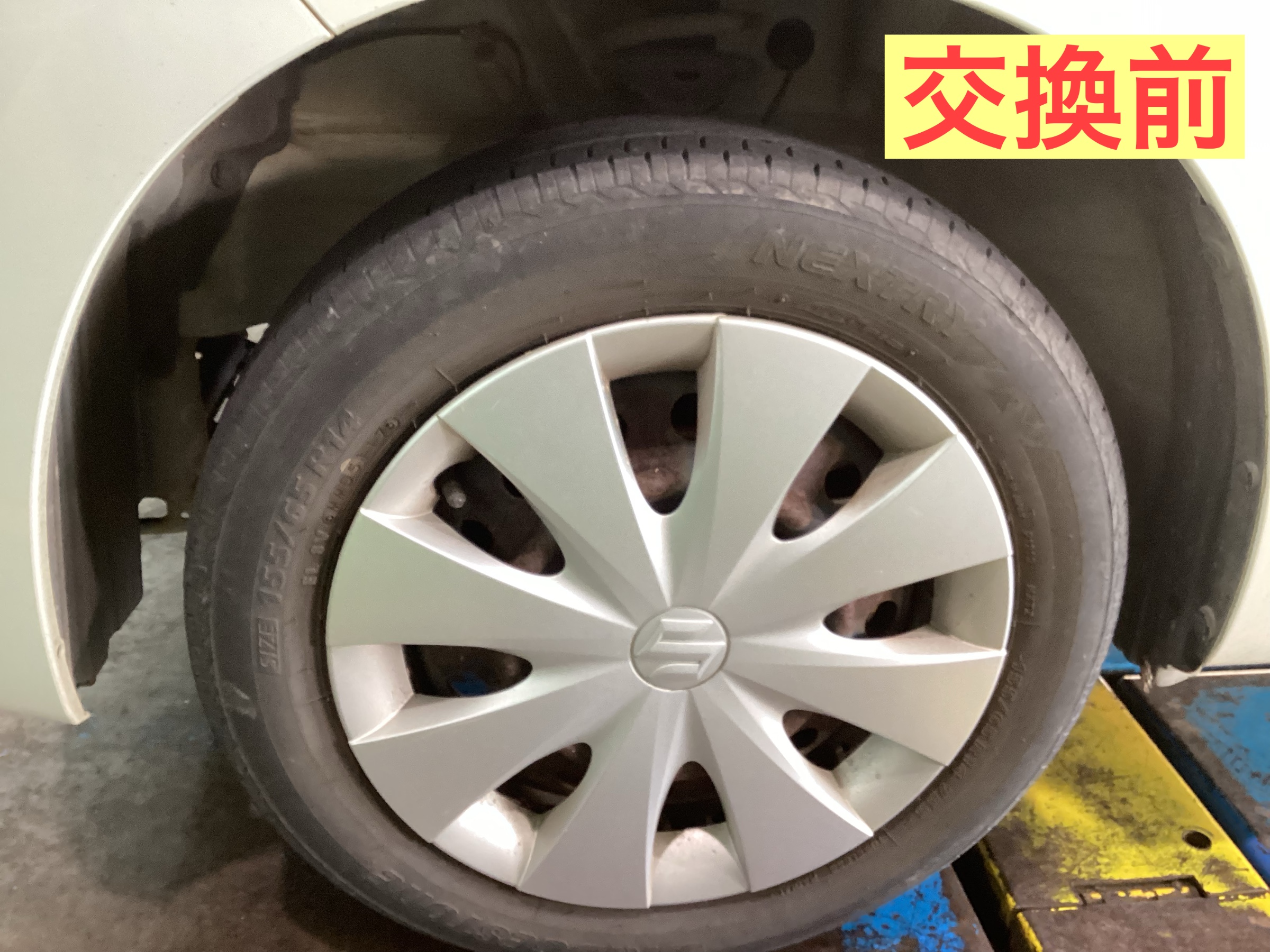 ブリヂストン工場製のお買い得タイヤSEIBERLING SL101 155/65R14です。タイヤ交換後、アライメント調整を実施致しました。タイヤの取付角度を真っ直ぐに調整してタイヤの持ちを良くして車本来の性能を取り戻します。タイヤの点検、ご相談はお気軽にタイヤ館へお声がけください。