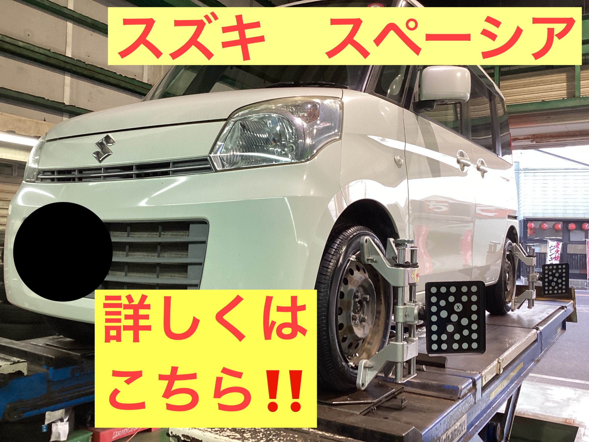 本日は、スズキ スペーシアのタイヤ交換です。お客様はタイヤの減り具合と年数が気になりご来店頂きました。早速、点検していきます。