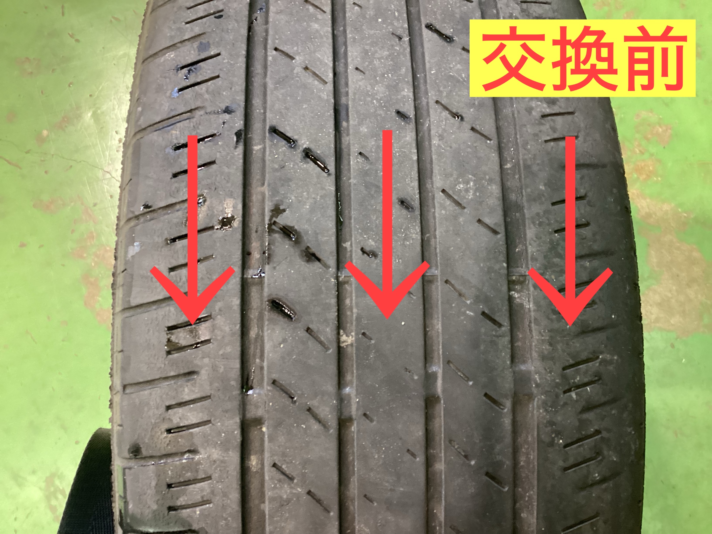 タイヤの交換時期は年数で【4年以上、タイヤの溝が半分以下】になってくるとタイヤの劣化、雨の日の性能が下がる為交換をおすすめしています。今回、交換したタイヤはこちらです。