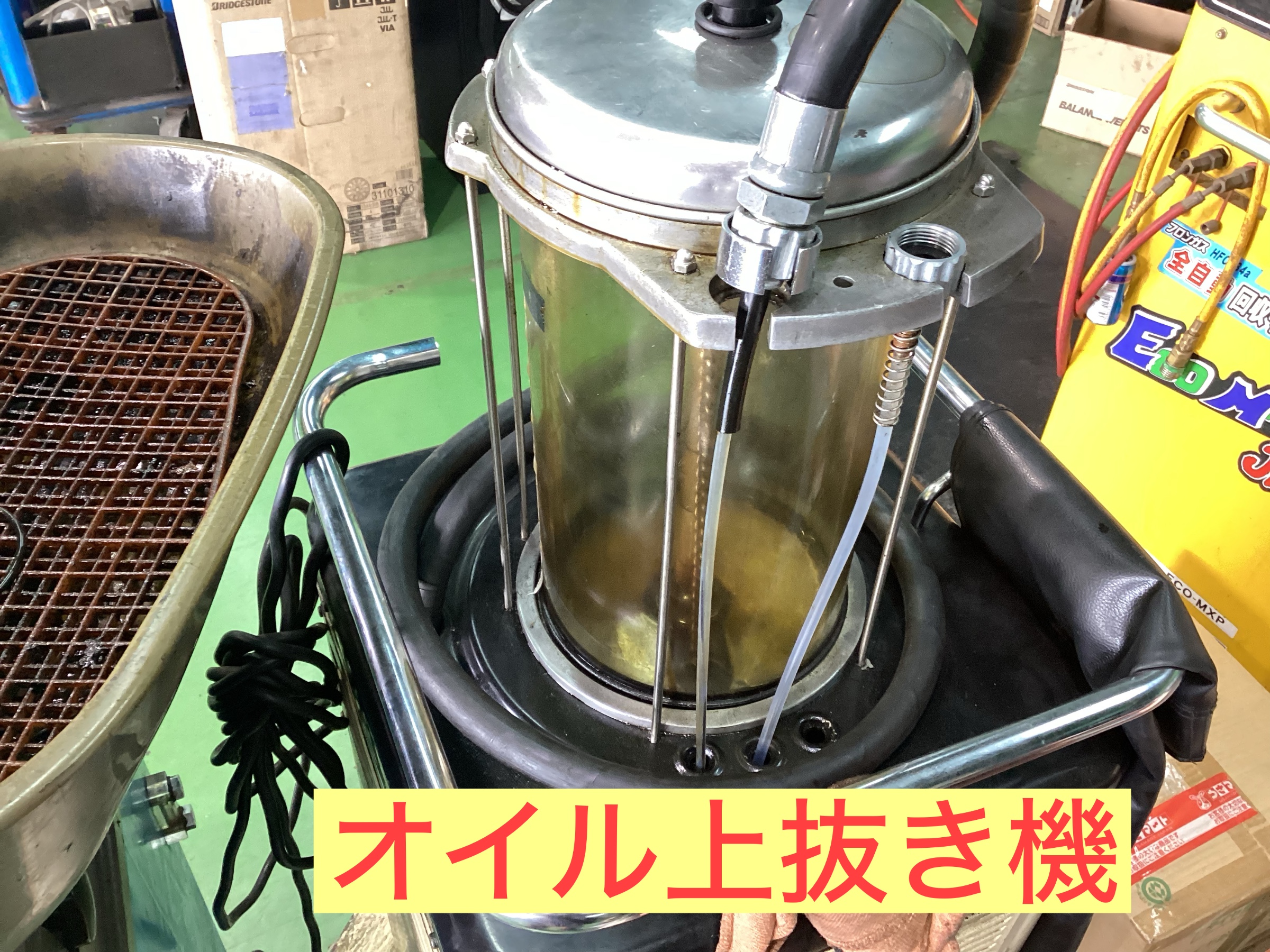 オイルは上抜き機で抜き取ります。