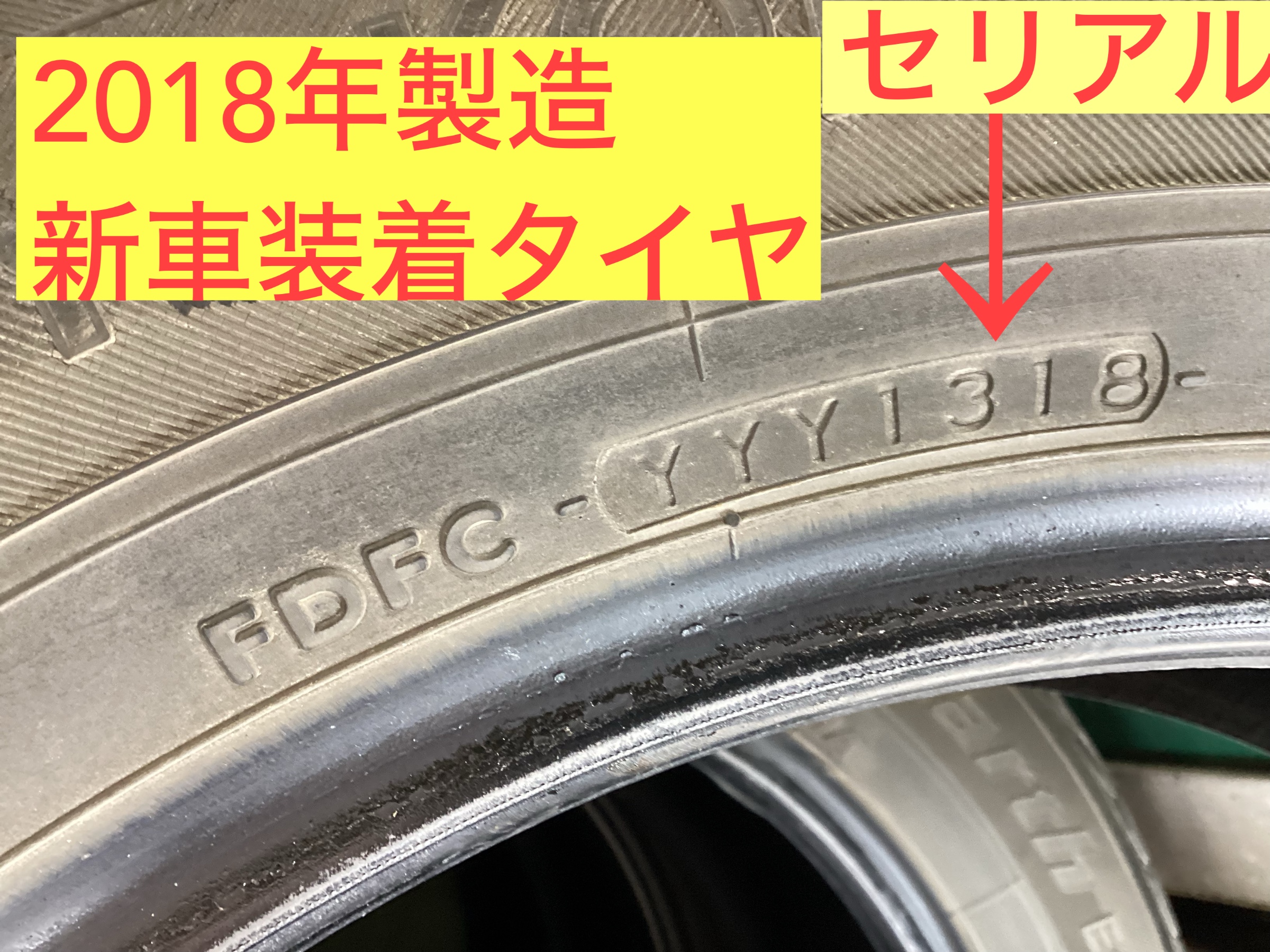 新車装着タイヤとして5年経過です。タイヤの交換時期は年数で4年以上もしくは残ミゾが半分以下どちらか経過で交換をおすすめしております。