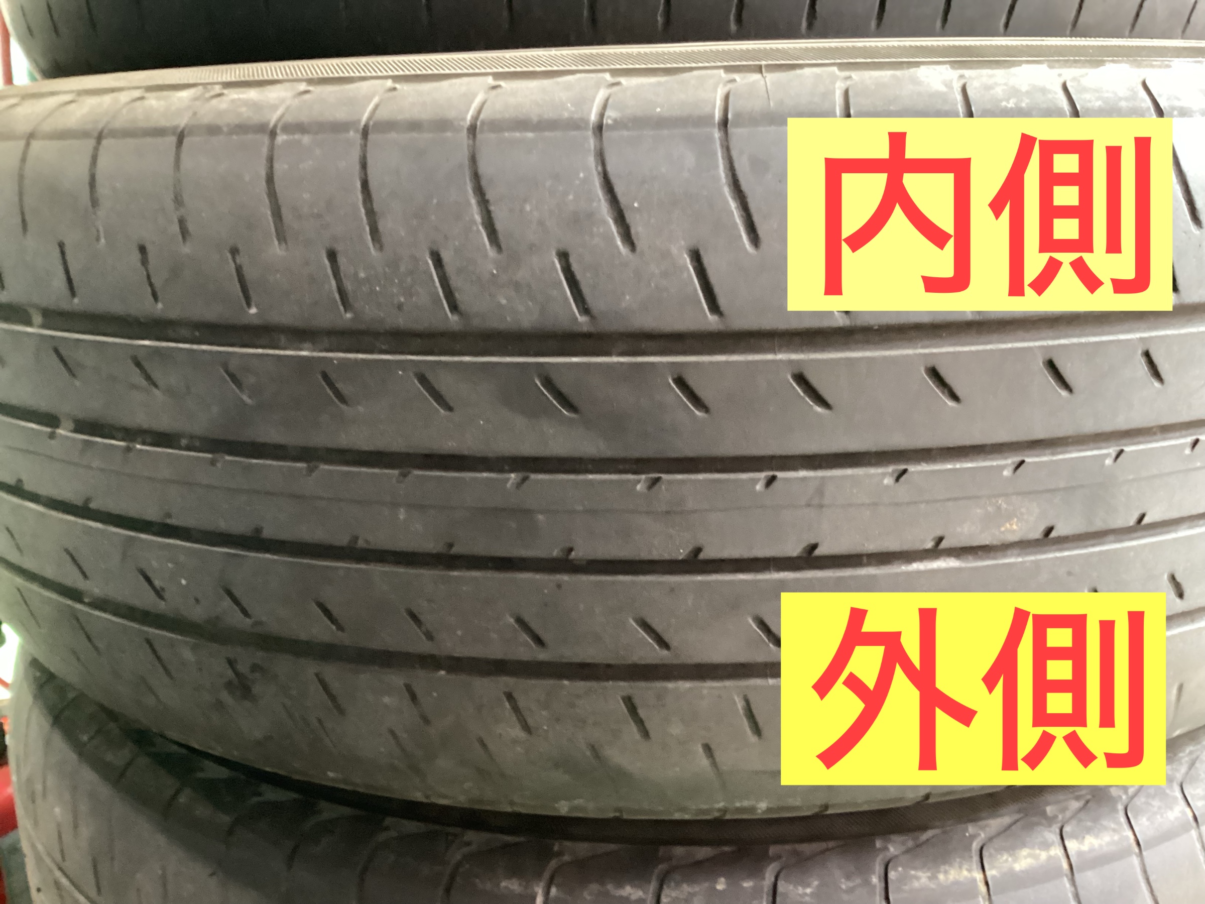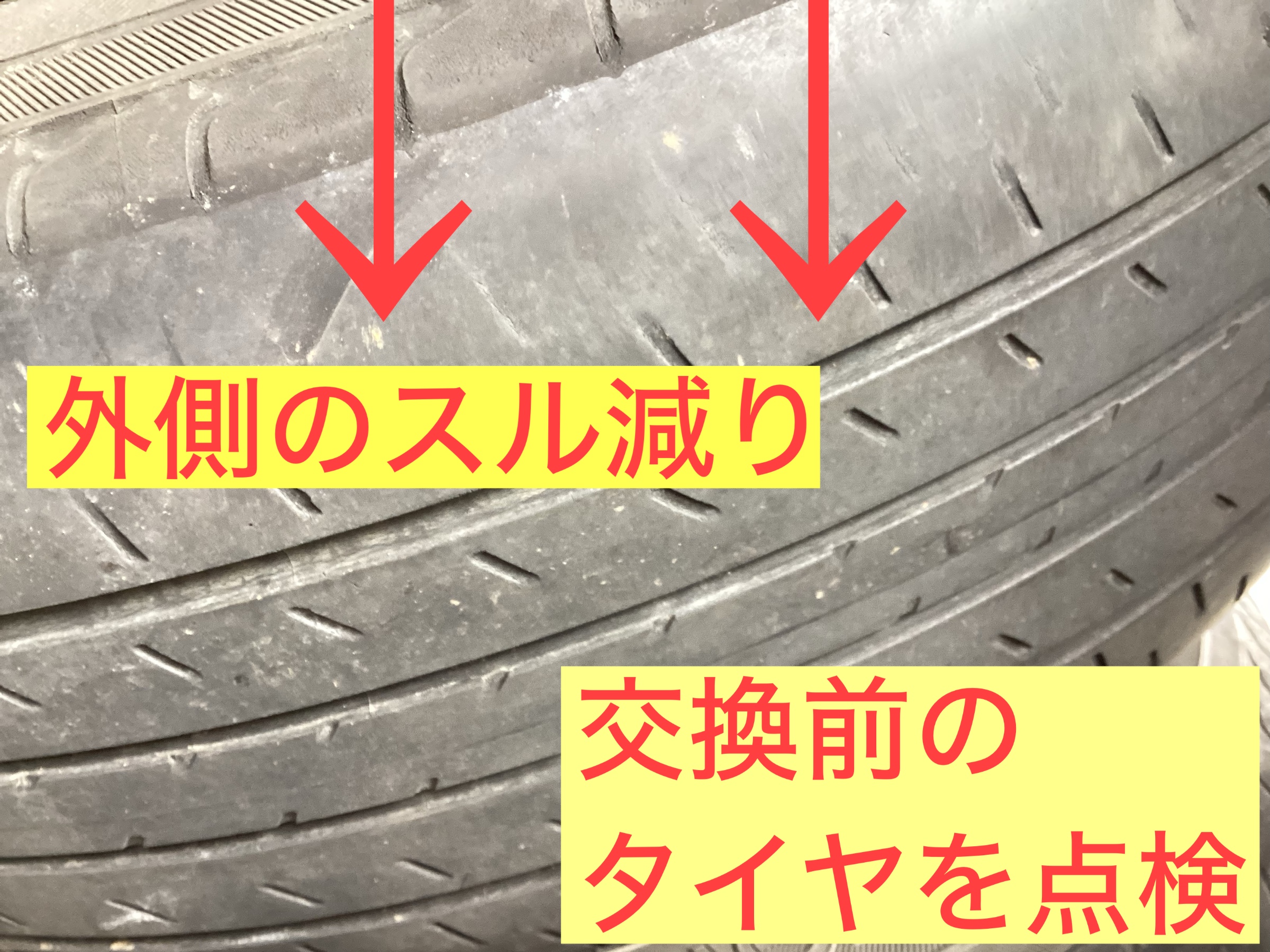 ミニバンは重心が高くふらつきやすい、車が重く多人数乗車時、タイヤへの負担は大きくなります。特に外側のヘリが気になります。