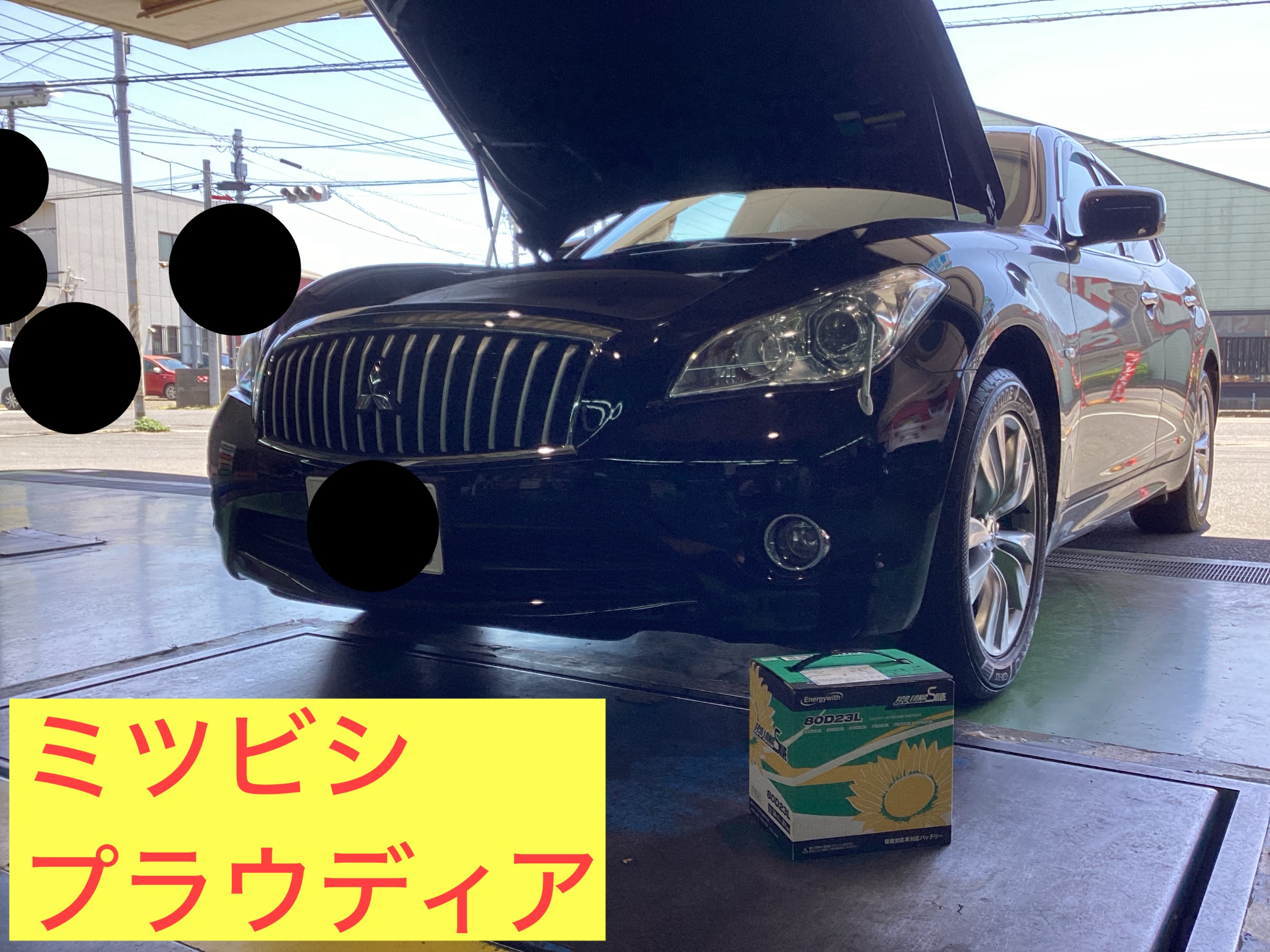 本日は、ミツビシのプラウディアのバッテリー交換です。