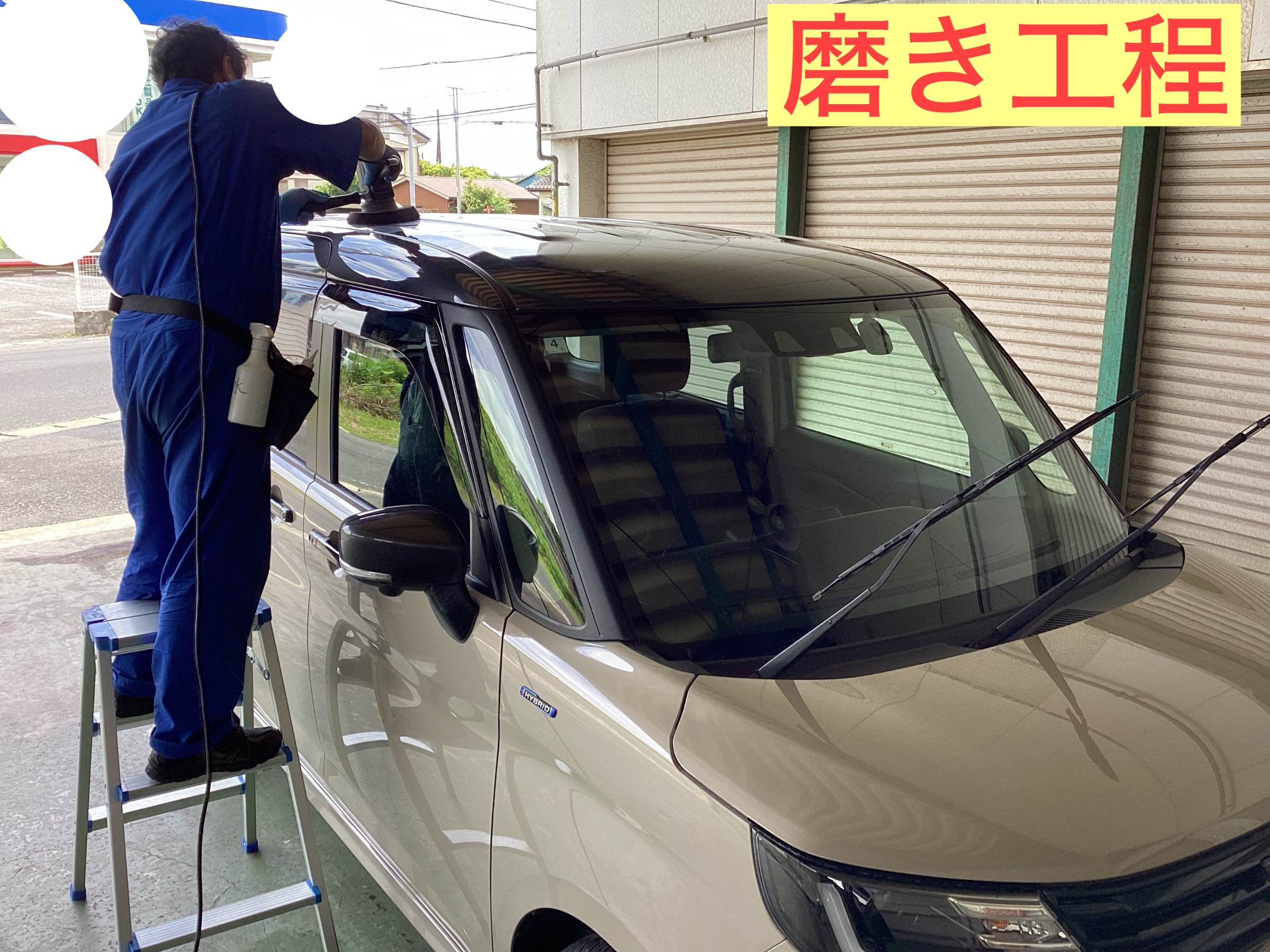 洗車からの磨き工程です。細かい傷、塗装面をならしていきます。