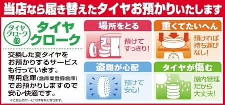 タイヤ館旭では、タイヤ保管プログラム(タイヤクローク)を取り扱っております。