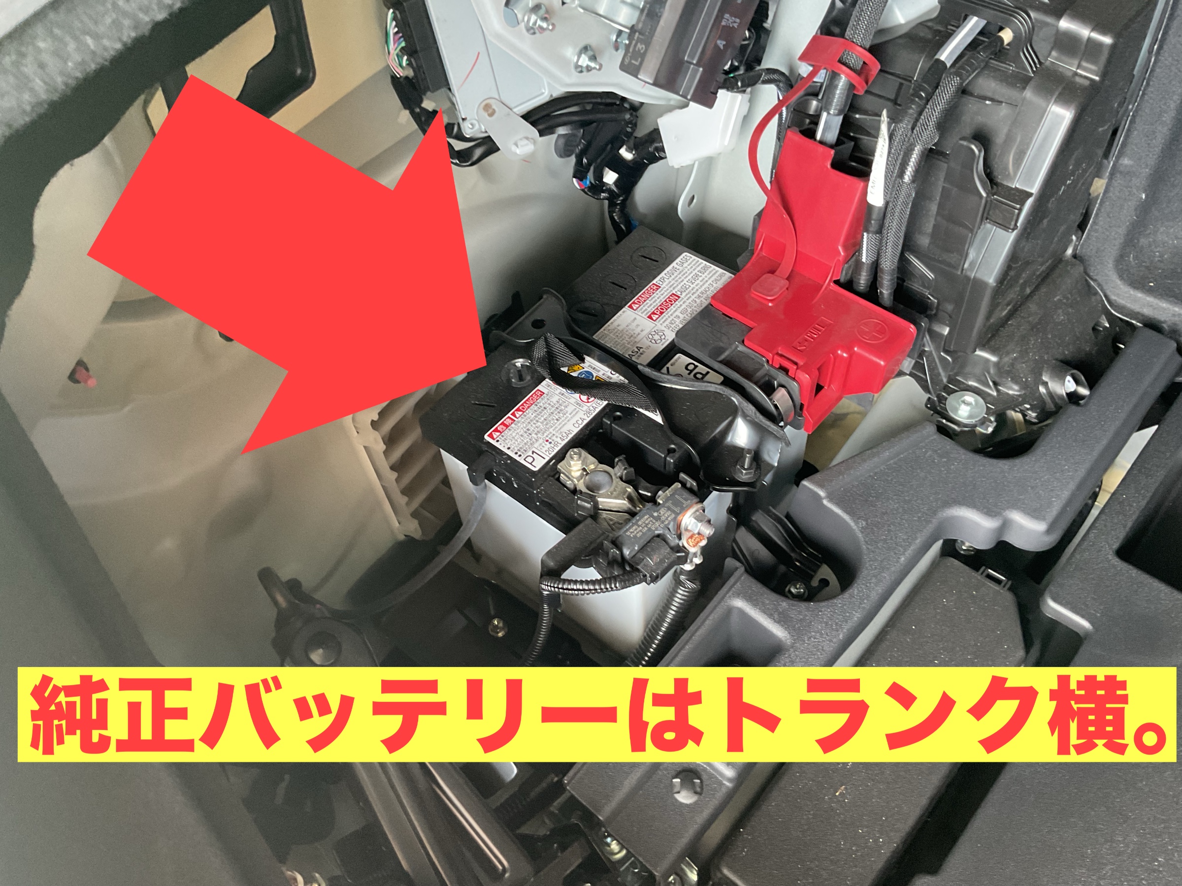 ハイブリッド車独特の場所にあり・・・バッテリーはトランクの左側に格納されています!