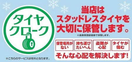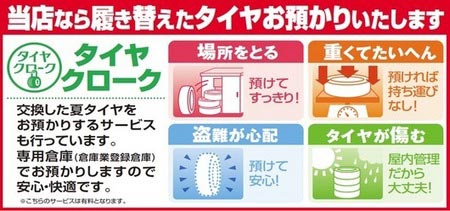タイヤ館旭店では、タイヤ保管プログラム【タイヤクローク】を