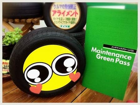 タイヤちゃんが持ってるグリーンの「メンテナンスグリーンパス」も一緒にお持ちくださいませ♪