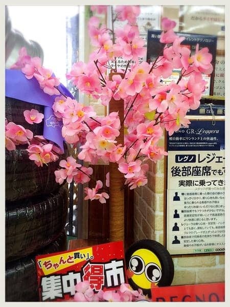 タイヤちゃんはね、早くも店内でお花見をたのしんでるよ~(人´3`*)フンフフ~ン♪