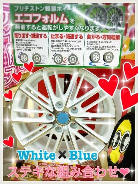 ちなみに♪写真3枚目のホイールは、センターキャップをオプションのライトブルーにしたら、とってもさわやかなホイールに様変わり~♪