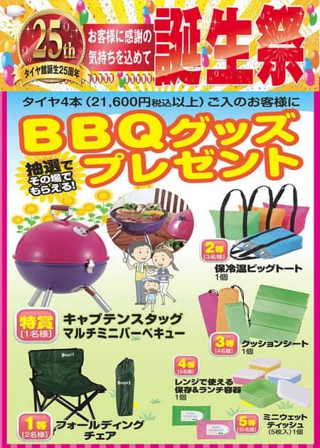 現在大好評開催中の「タイヤ館誕生25周年」♪【誕生祭】とのダブルイベントです!!