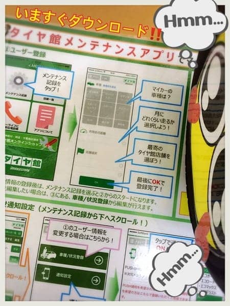 【タイヤ館メンテナンスアプリ】なんですヾ(o´∀`o)ノ!!