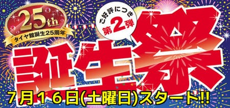 7月16日(土)より、【タイヤ館誕生25周年♪誕生祭】《第2弾》!!を開催いたしますヾ(o´∀`o)ノ