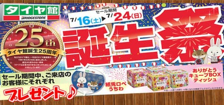 明日7月16日(土)より、【タイヤ館誕生25周年♪誕生祭】《第2弾》!!
