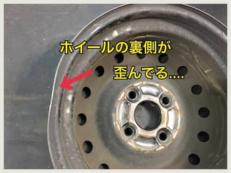 そのホイールをよく見ると(゚Д゚) 残念ながら(ノД`)ぐにゃっと歪んでしまっていたのです(ノД`)(写真1枚目)