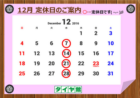 12月7日(水曜日) 定休日のご案内♫•*¨*•.¸¸♪