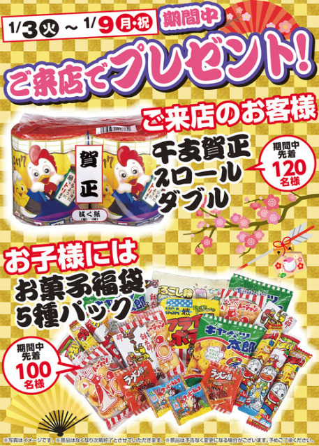 初売りセール期間中、先着120名様に新年のごあいさつも込めて、ご来店プレゼントをご用意しております。
