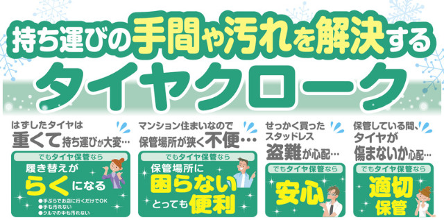 そして♪スタッドレスタイヤを買ったら、夏用タイヤの保管はどうしたらいいの?保管する場所がなくて困る!という方は、当店の「タイヤクローク」(有料)で、お預かりも可能です。お気軽にご相談ください♪