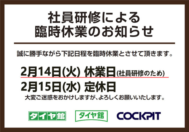 そして、「14日(火)・15日(水)」は、「休業日・定休日」で2日間のお休みを頂戴いたします。