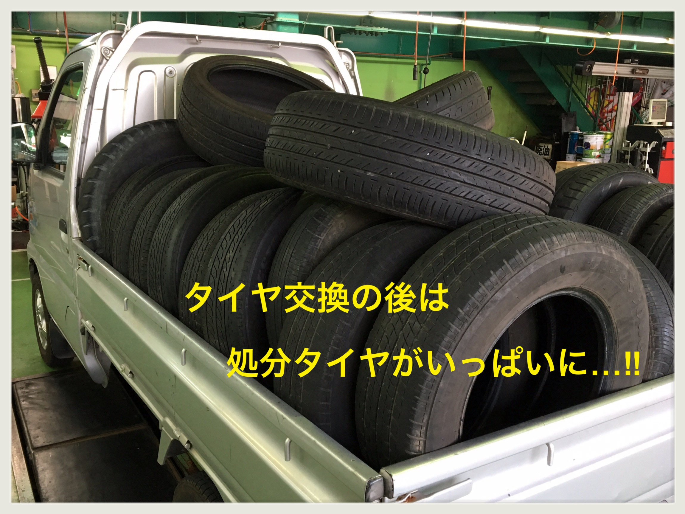 たくさんタイヤ交換させていただき、処分タイヤがいっぱいに∑(*゚ェ゚*)