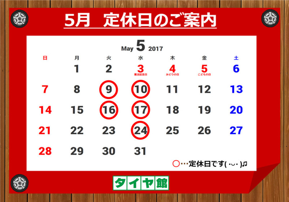 24日(水曜日)は、定休日となります!