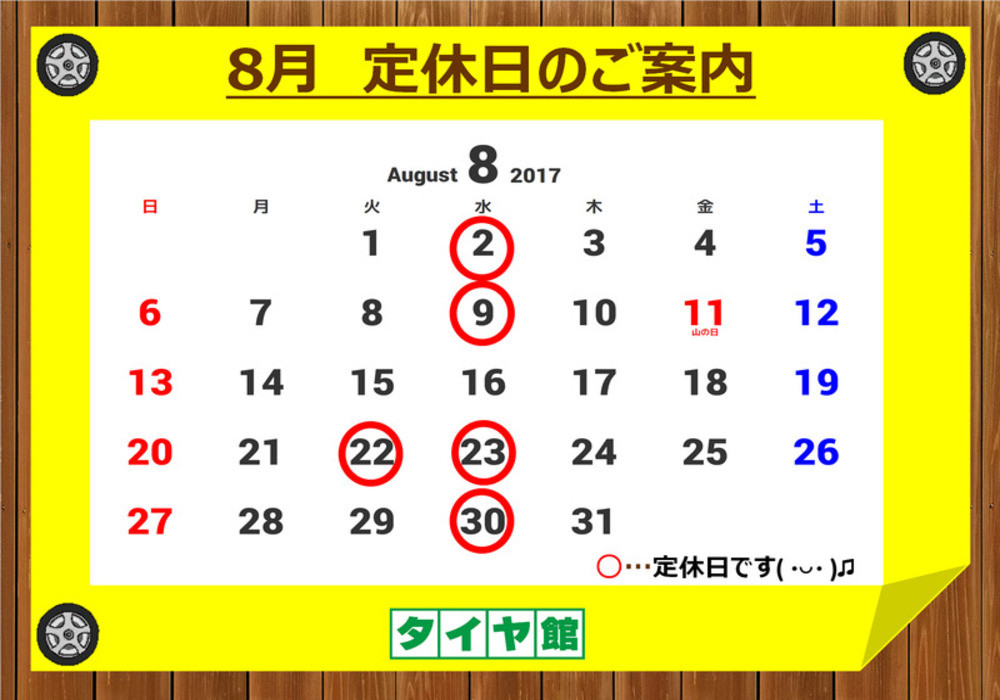 【8月】の定休日カレンダーを参考にしていただき、ぜひお気軽にご来店ください( ・◡・ )!!