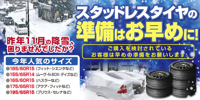 11月に入り、スタッドレス(冬用)タイヤに関して多くのご相談、ありがとうございます!!