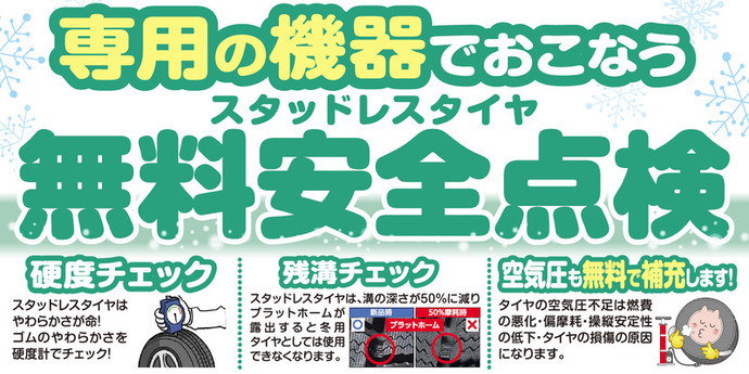 お手数ですがお持ちいただければ、硬度チェックや、残り溝の状態など点検いたします!