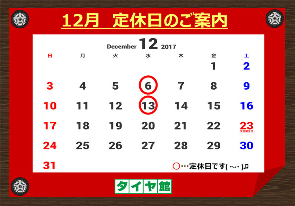 誠に恐れ入りますが、次週「12月13日(水曜日)」が、定休日となりますので、ご来店予定のお客様におかれましては、ご留意くださいますよう何卒宜しくお願い申し上げます。