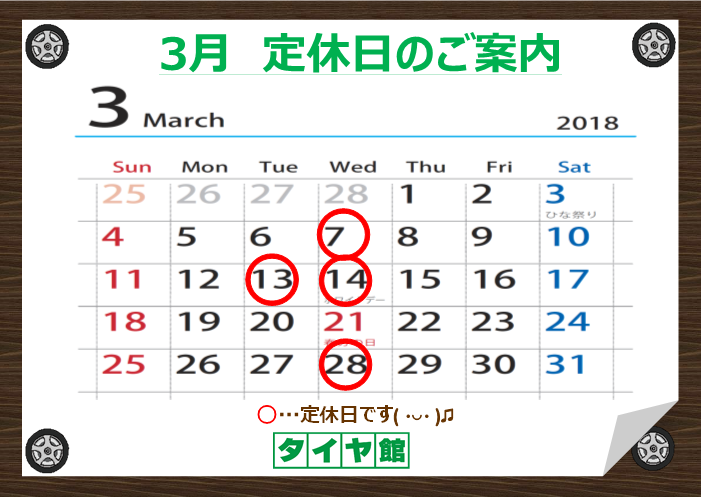 明日28日は定休日です。