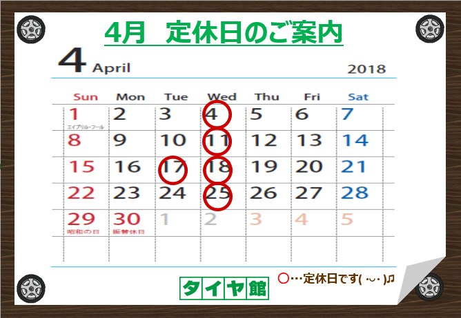 定休日のご連絡
