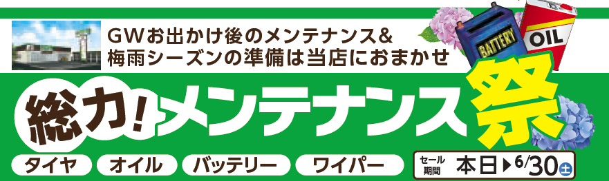 オイル・バッテリーを含めた無料安全点検も実施しています。