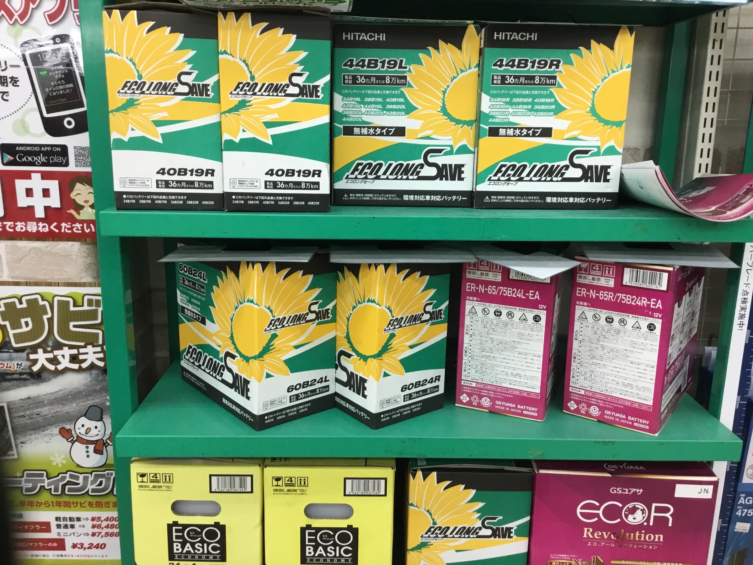 バッテリーは店内に在庫が豊富に揃えております。