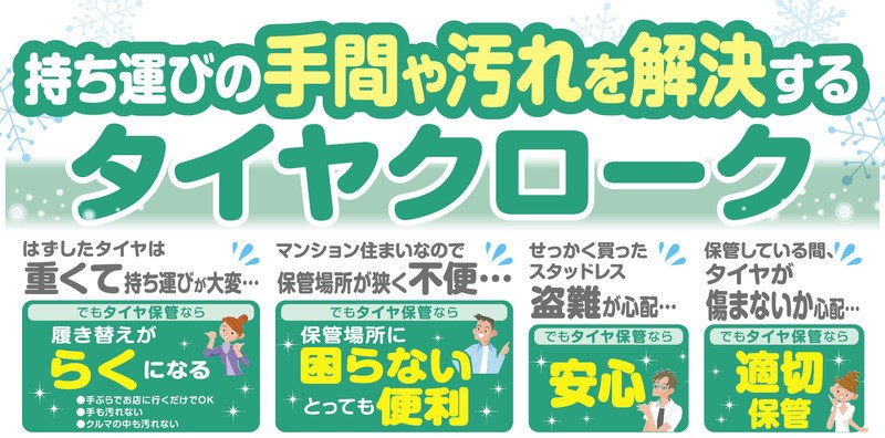 なんてときに、多くお問合せをいただく【タイヤ保管プログラム(タイヤクローク)】のご案内です♪