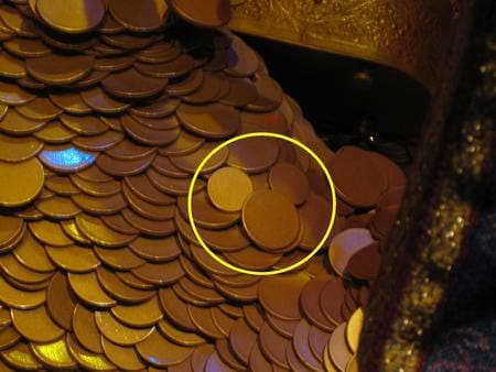 アブーの尻尾が見られます。アブーの尻尾の近く、金貨が3枚ミッキー形に並べられています。