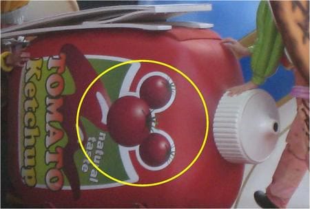 登場するケチャップボトルからです。写真で見ればすぐ分かるとおもいます。
