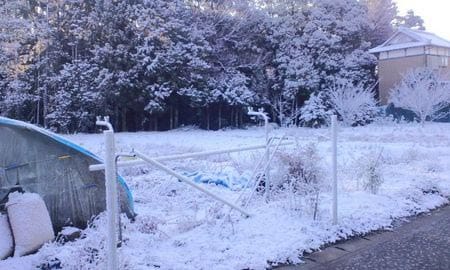 朝起きたら、真っ白でした。。。つ…つ…ついに、、、雪が降った―!!!