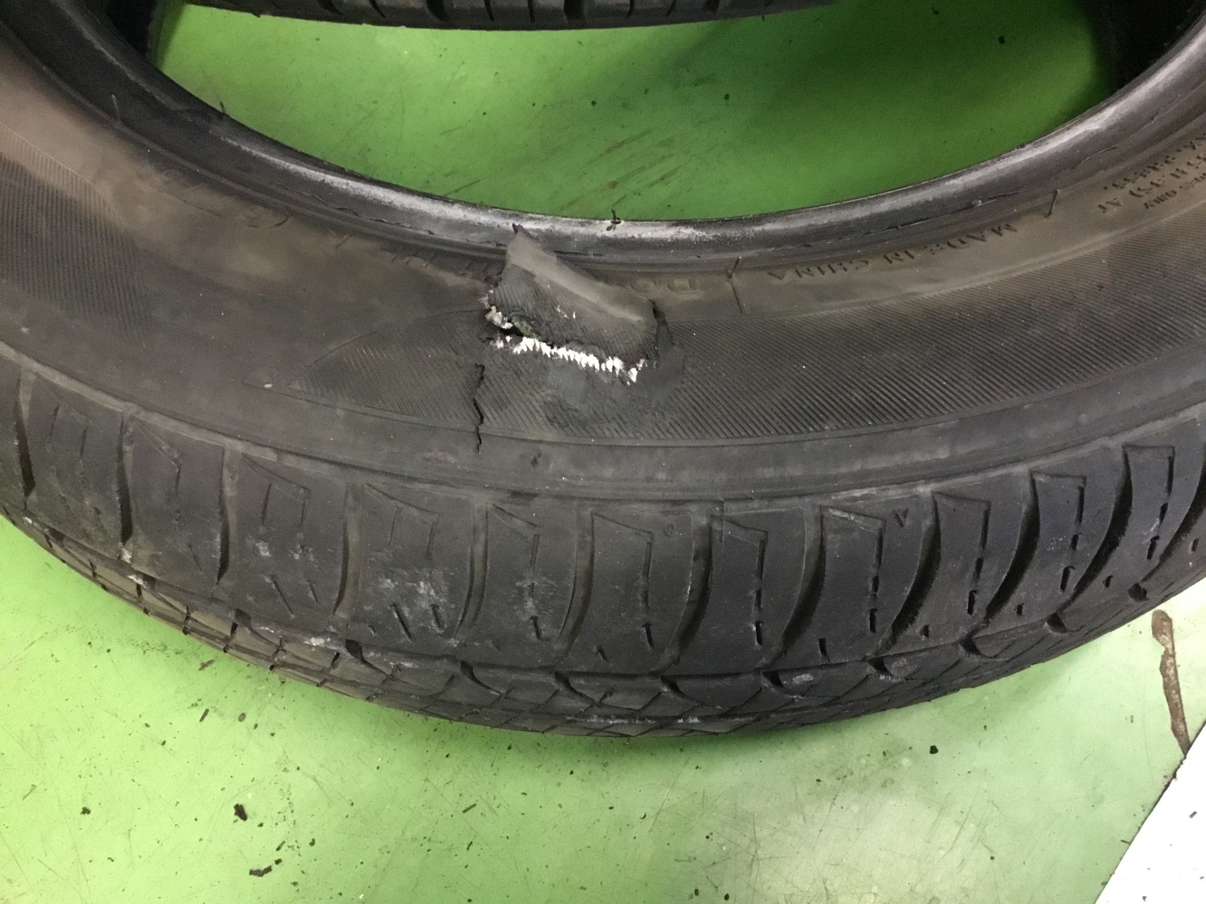 実際にタイヤを見てみると横の部分がぱっくりいっていてこのままでは使い物にならないので