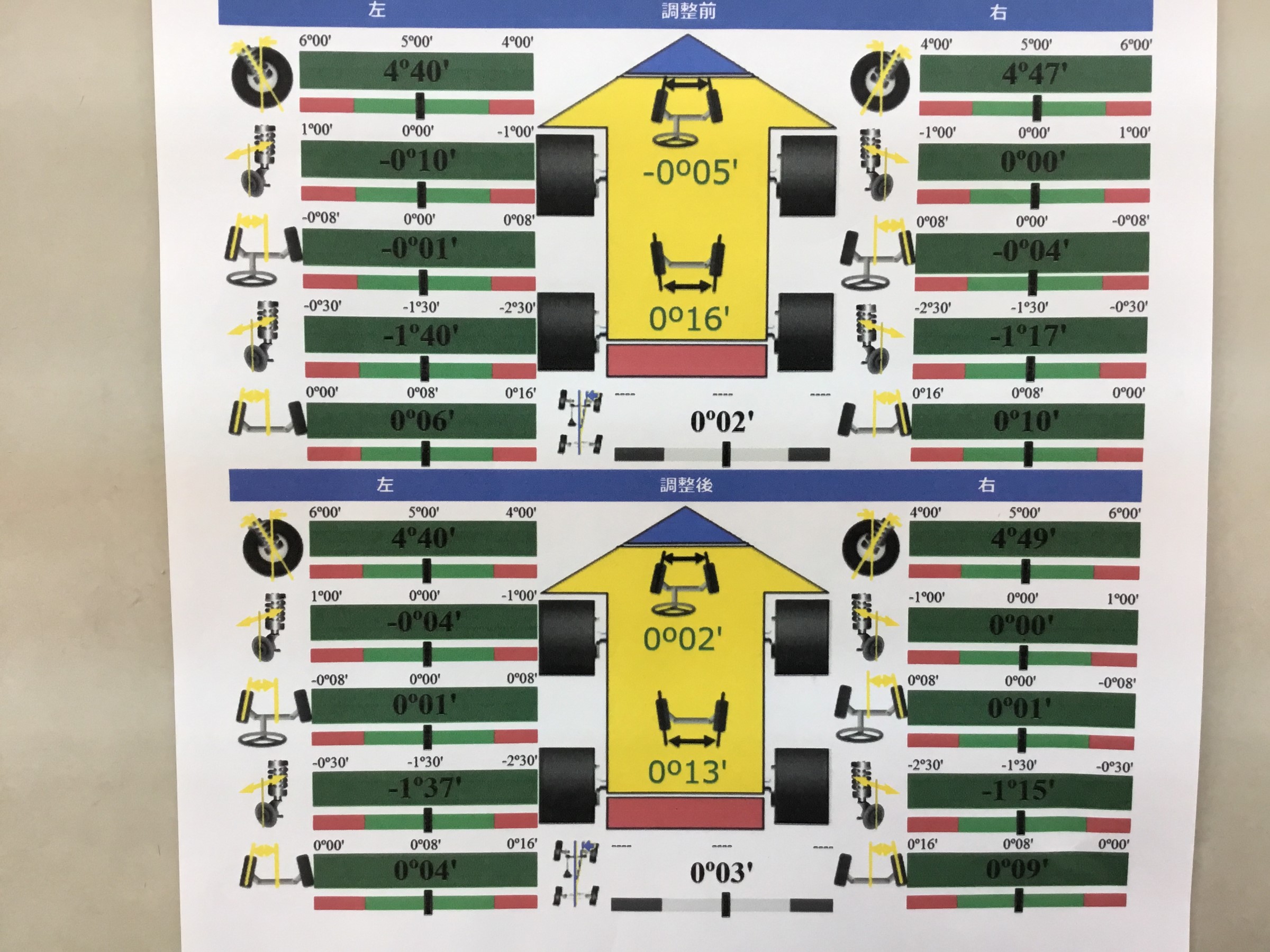 フロント部分をやってしまったらしくアライメント測定することになりました。