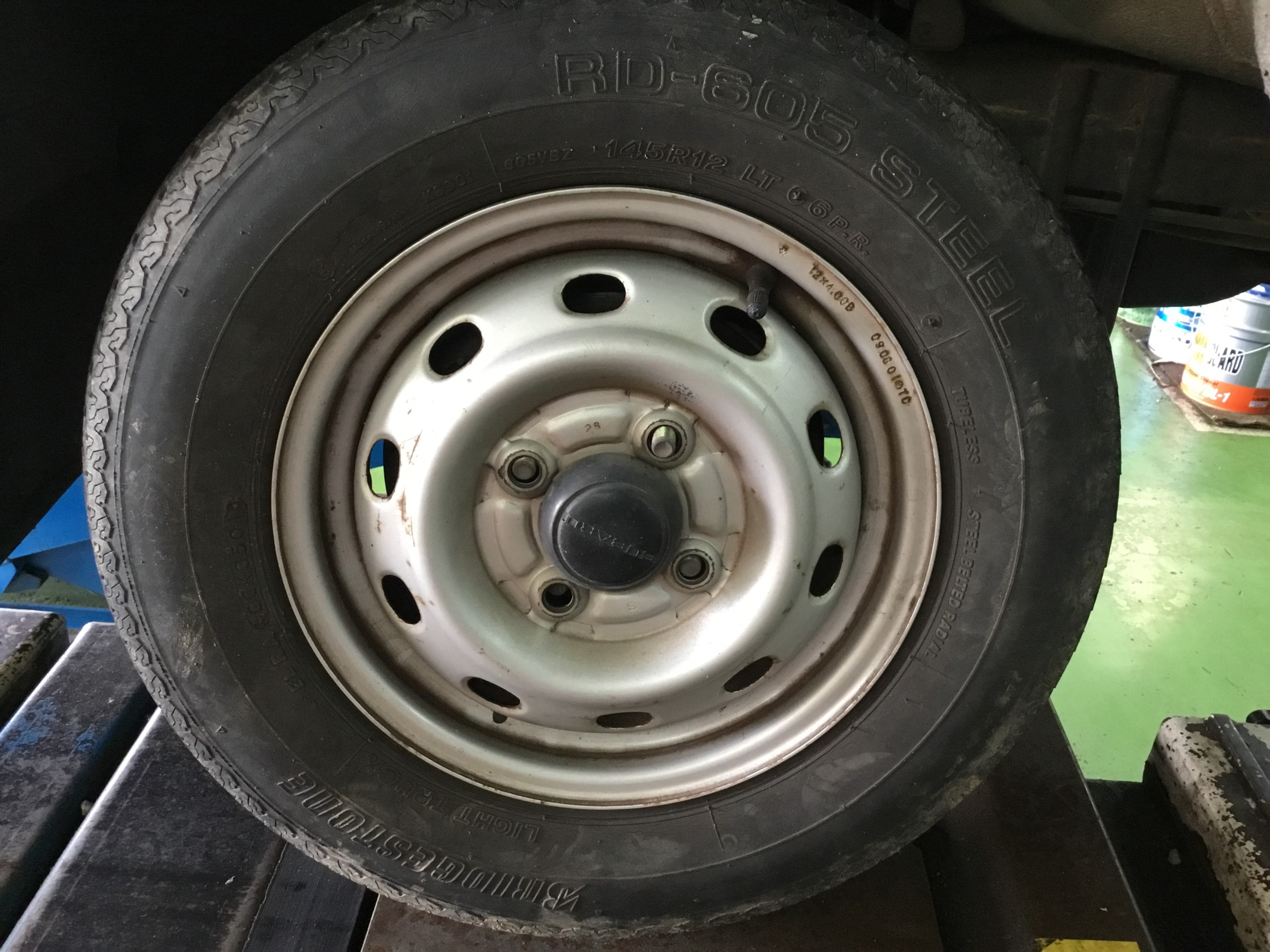 今日の作業はサンバーのタイヤ交換になります(`・ω・´)