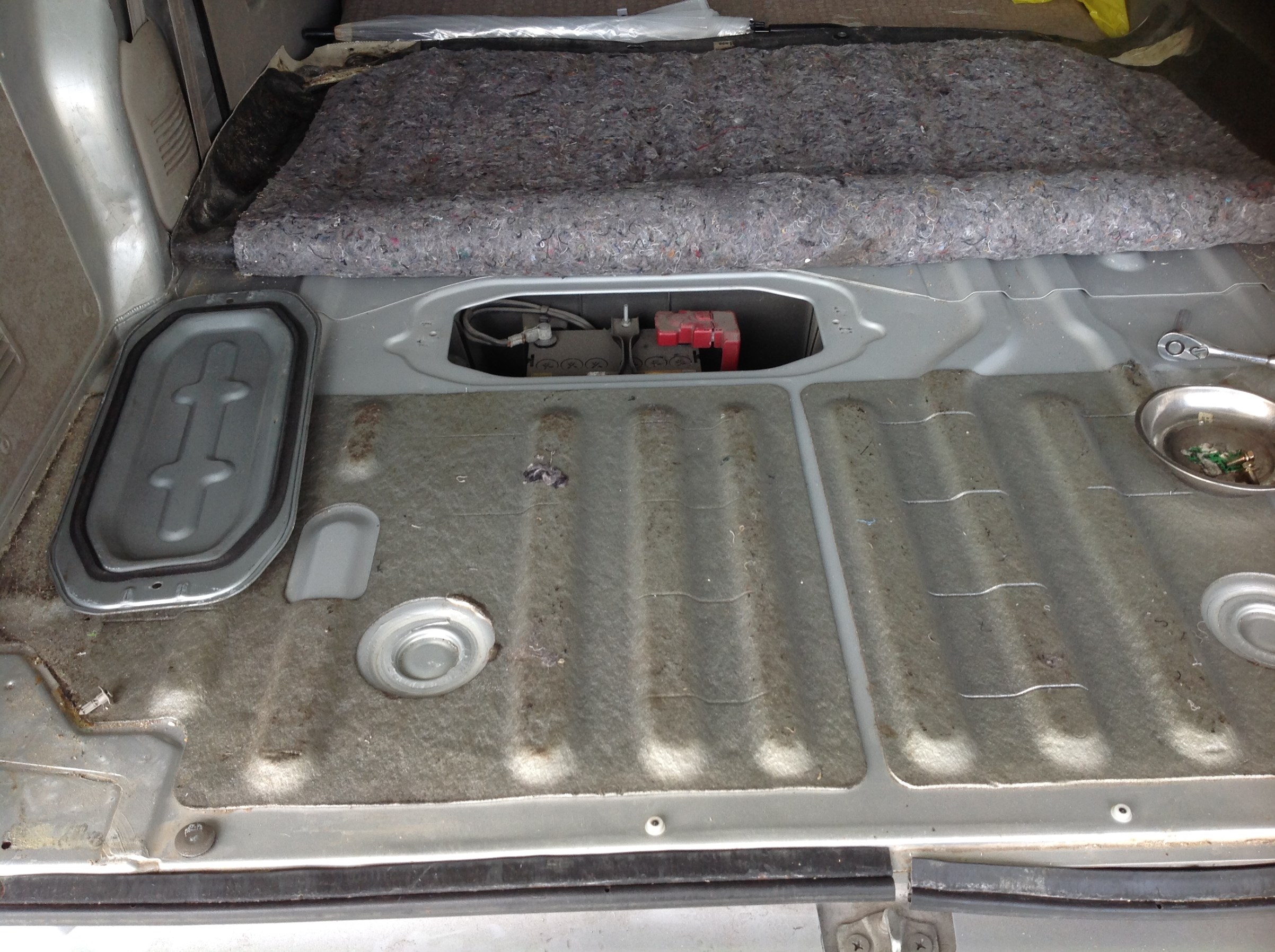 トランクのカーペットをめくると、2本のボルトとカバーがあり、その下に搭載されています!