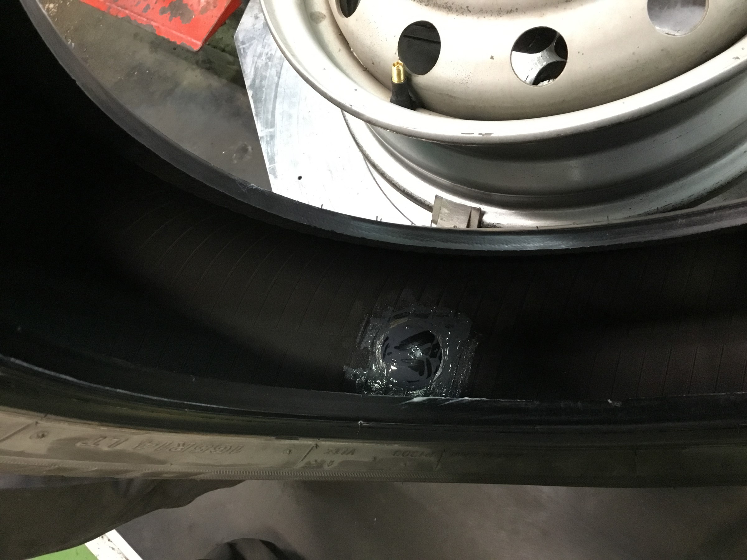 エア漏れはしてしまっていたためパンク内面修理を実施しました。